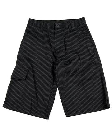 All over pinstripe design 6-pocket design Stitched design on back pockets outlined with embroidery Flap back and cargo pockets Button fly closure